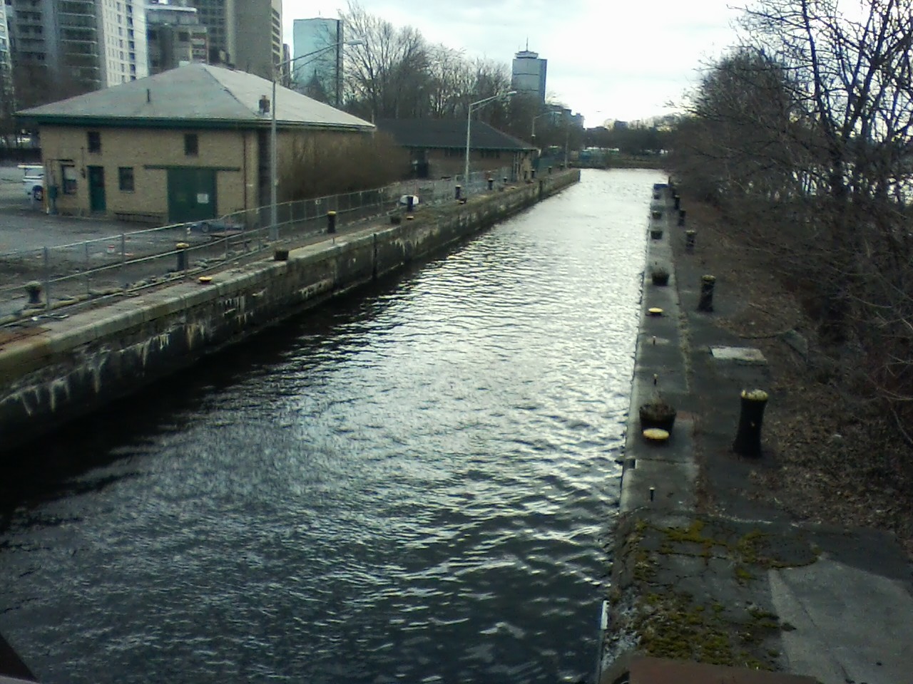 As promised, Lechmere Canal. Constructed 1895, I'm not sure when it was shortened to its present dimensions. Based on the maps I have access to, after 1930. Behind me is a sort of pool with a bandstand and a fountain. Boat tours embark there in the summer.