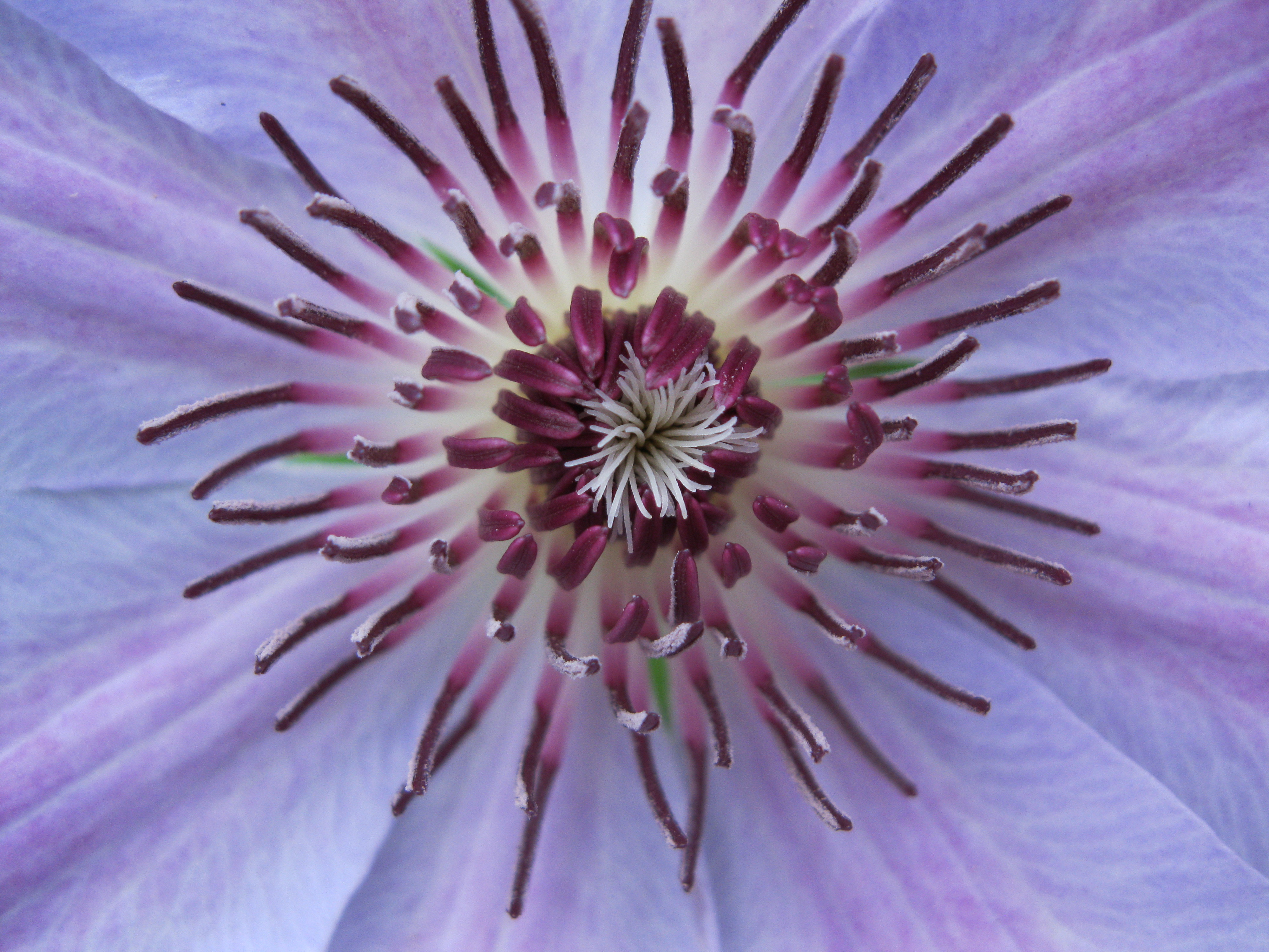The heart of a clematis looks like a sea anemone. Or an alien.