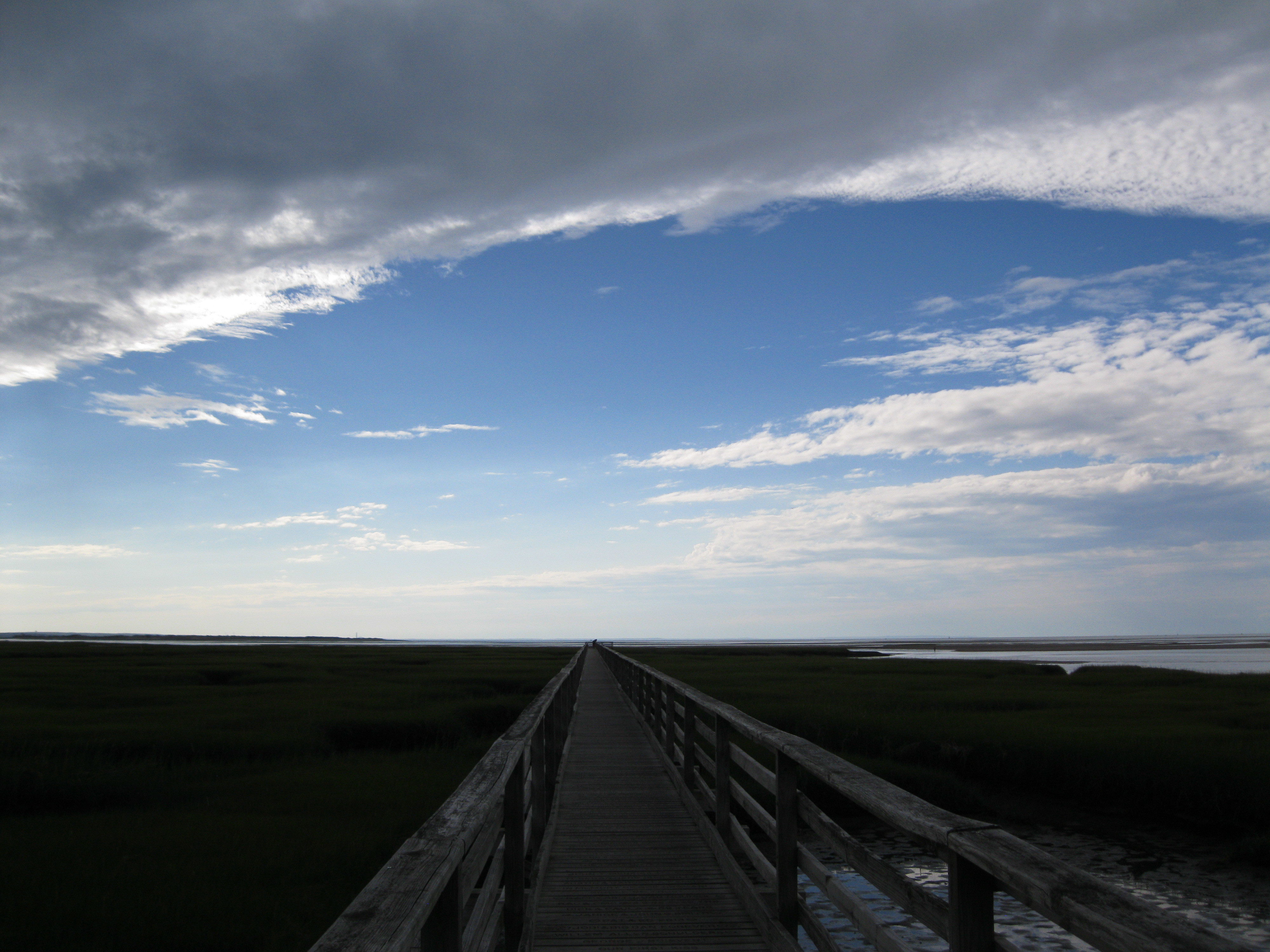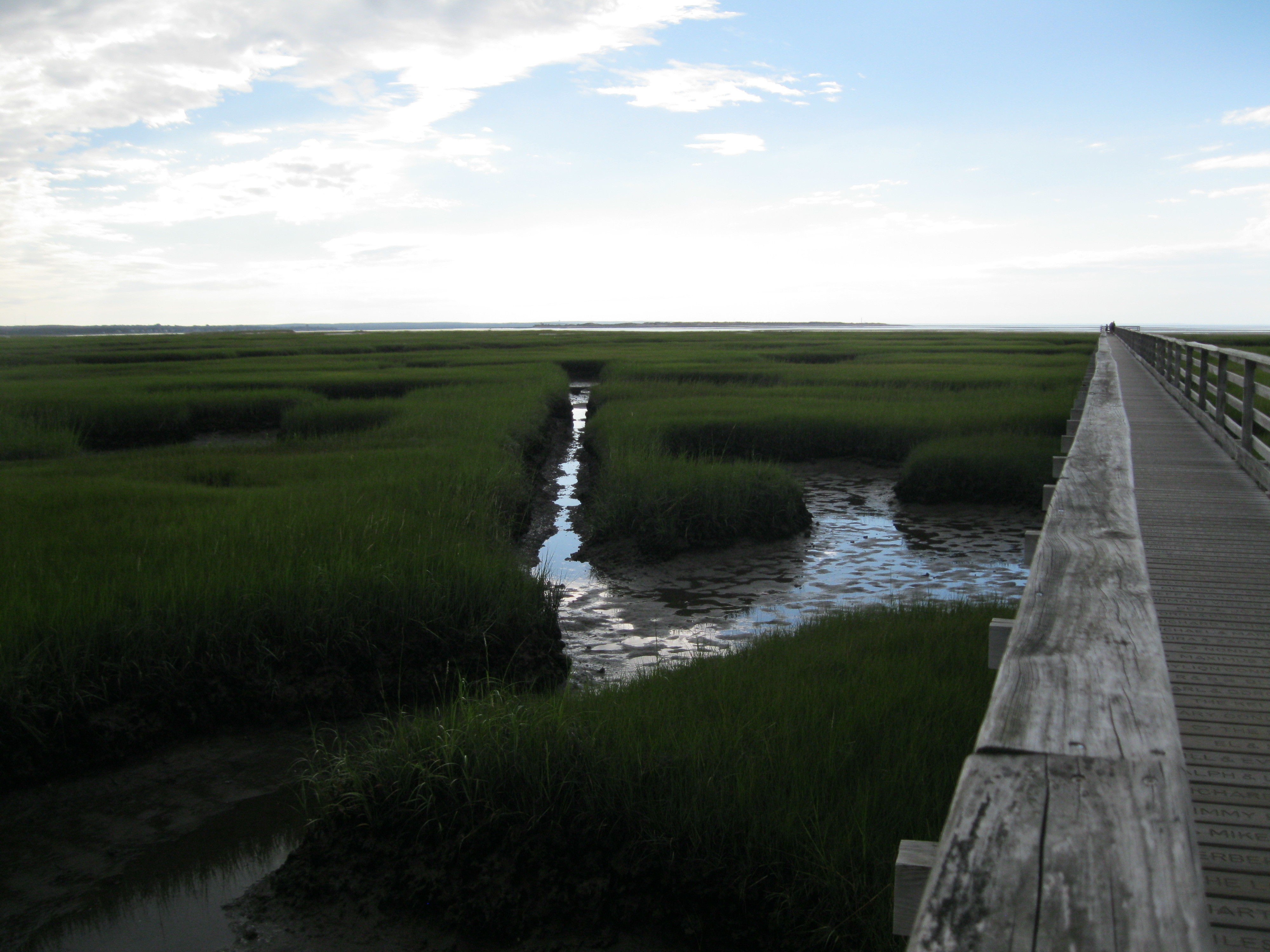 spatch to the mercy of voracious kittens, I have fled to the Cape with my parents for a couple of days. Naturally the weather promptly turned rainy and cold, but that did not stop me from visiting the salt marsh at Bass Hole Boardwalk, which we had seen from Chapin Beach in June. I took some pictures and my father took a picture of me.