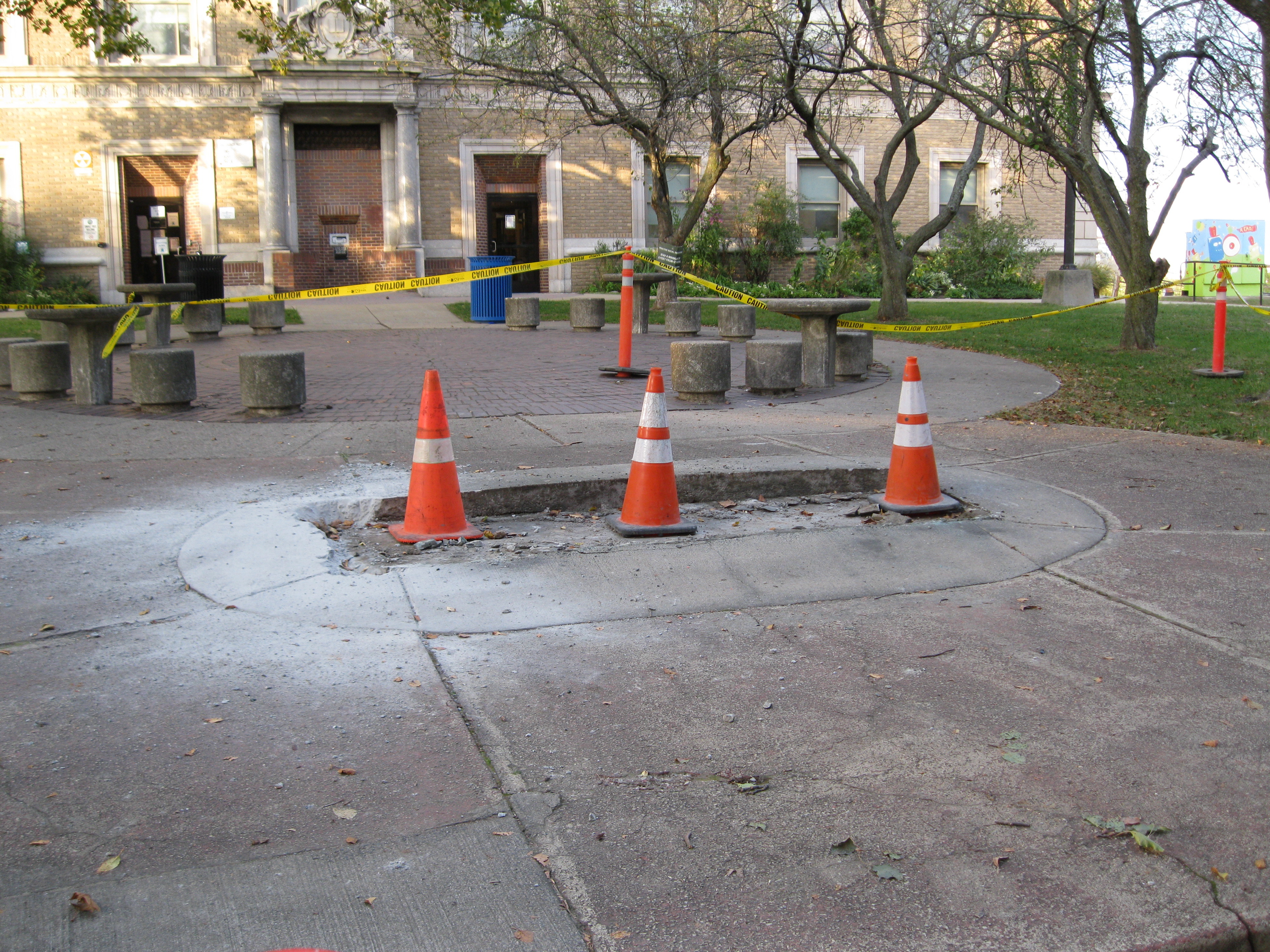 The war memorial in front of the Somerville Public Library has been removed. I can't tell if its absence is construction- or politics-related. I always thought it was for the Spanish-American War, but it turns out to include also the Philippine-American War and the China Relief Expedition. It used to get Phil Ochs' "Sailors and Soldiers" stuck in my head (the version I learned from Sid Griffin and Billy Bragg, specifically) and now, to the annoyance of his shade, I expect, it's given me Dylan.