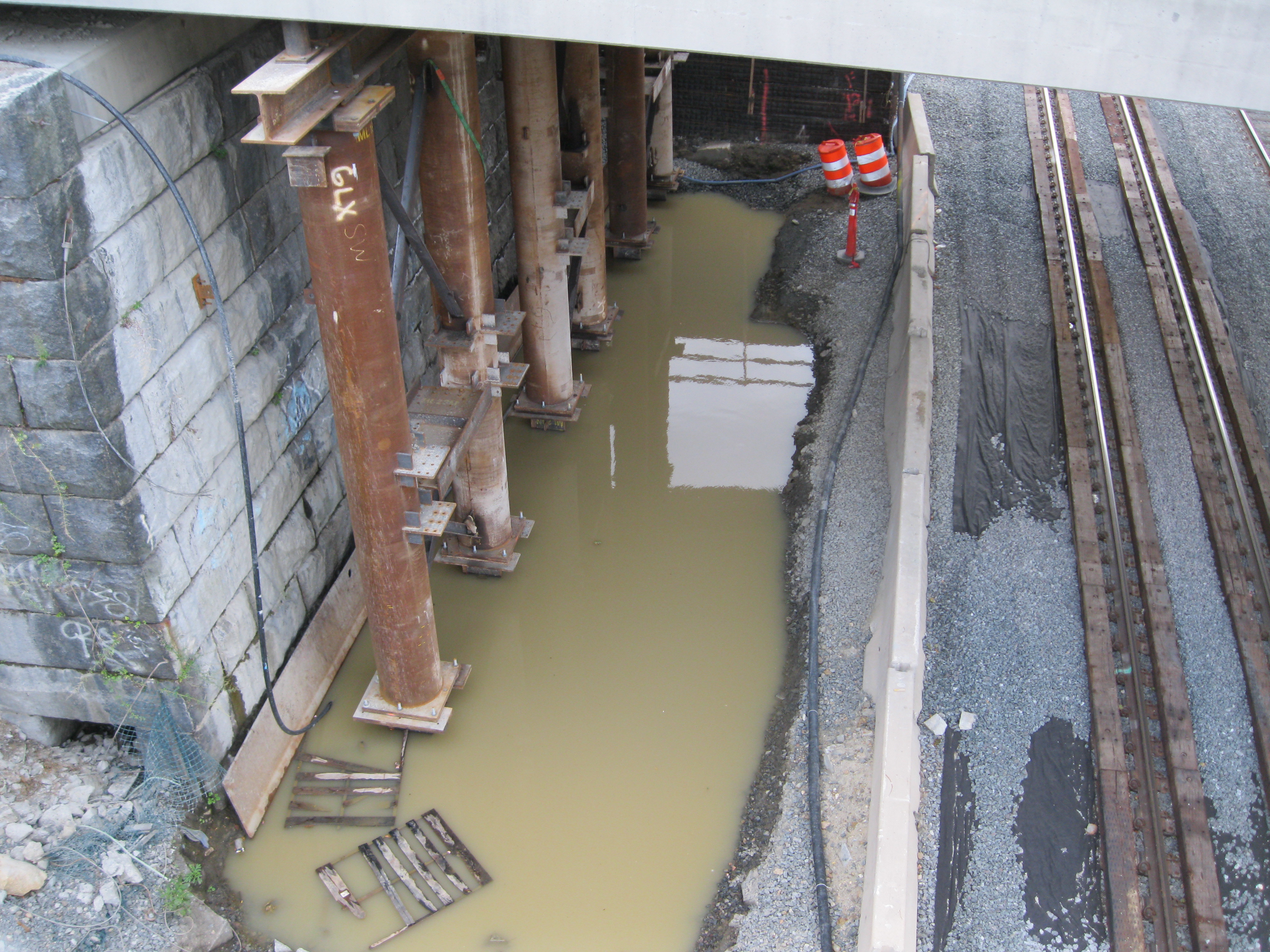 I am fairly confident there shouldn't be water underneath the School Street Bridge, since it runs over train tracks, not a river, but we've been seeing it for weeks and now there's a sort of pump set up out of shot. I liked the square of reflection floating in the seepage. It seemed to mimic the drowned pieces of crates.