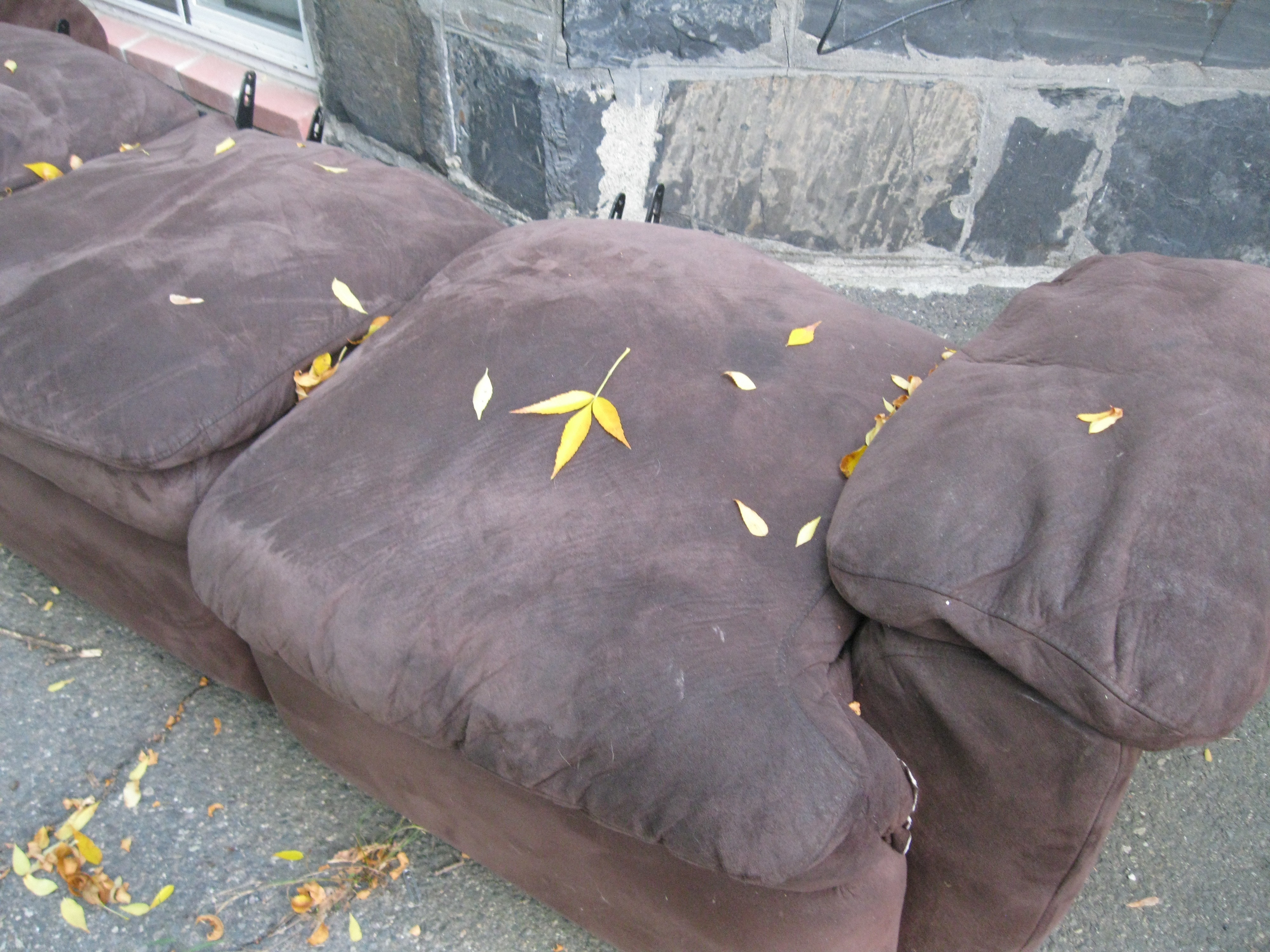 Under no circumstances did we even think of taking home this sidewalk couch, but it seemed to be making the leaf happy.