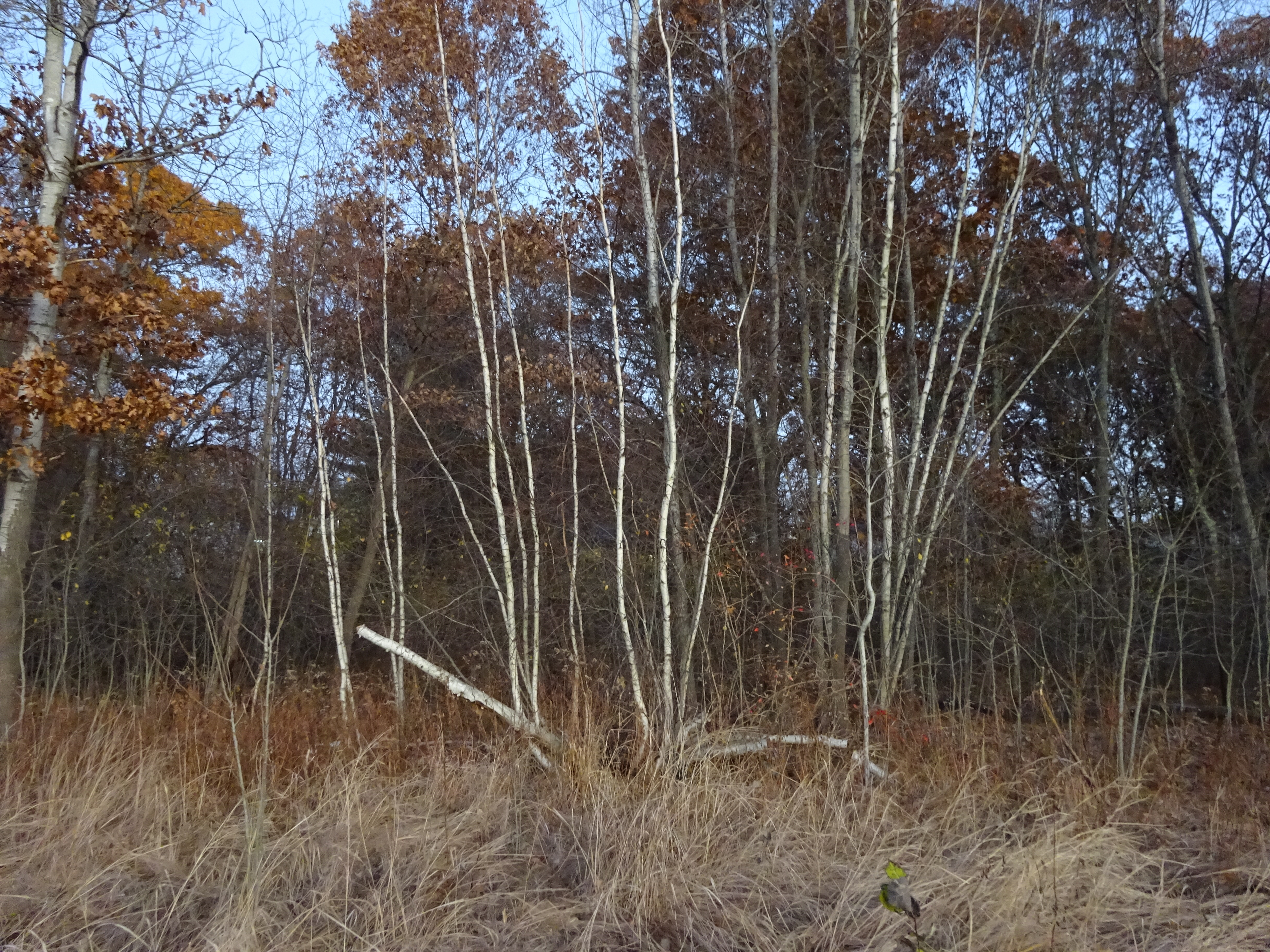 We made it to the margins of the Meadows just before we had to turn back for the time. It was nothing more than a silhouette in the westering light, but something went overhead that held its legs together like a heron or an egret. Birches look like ghosts wherever they spring.