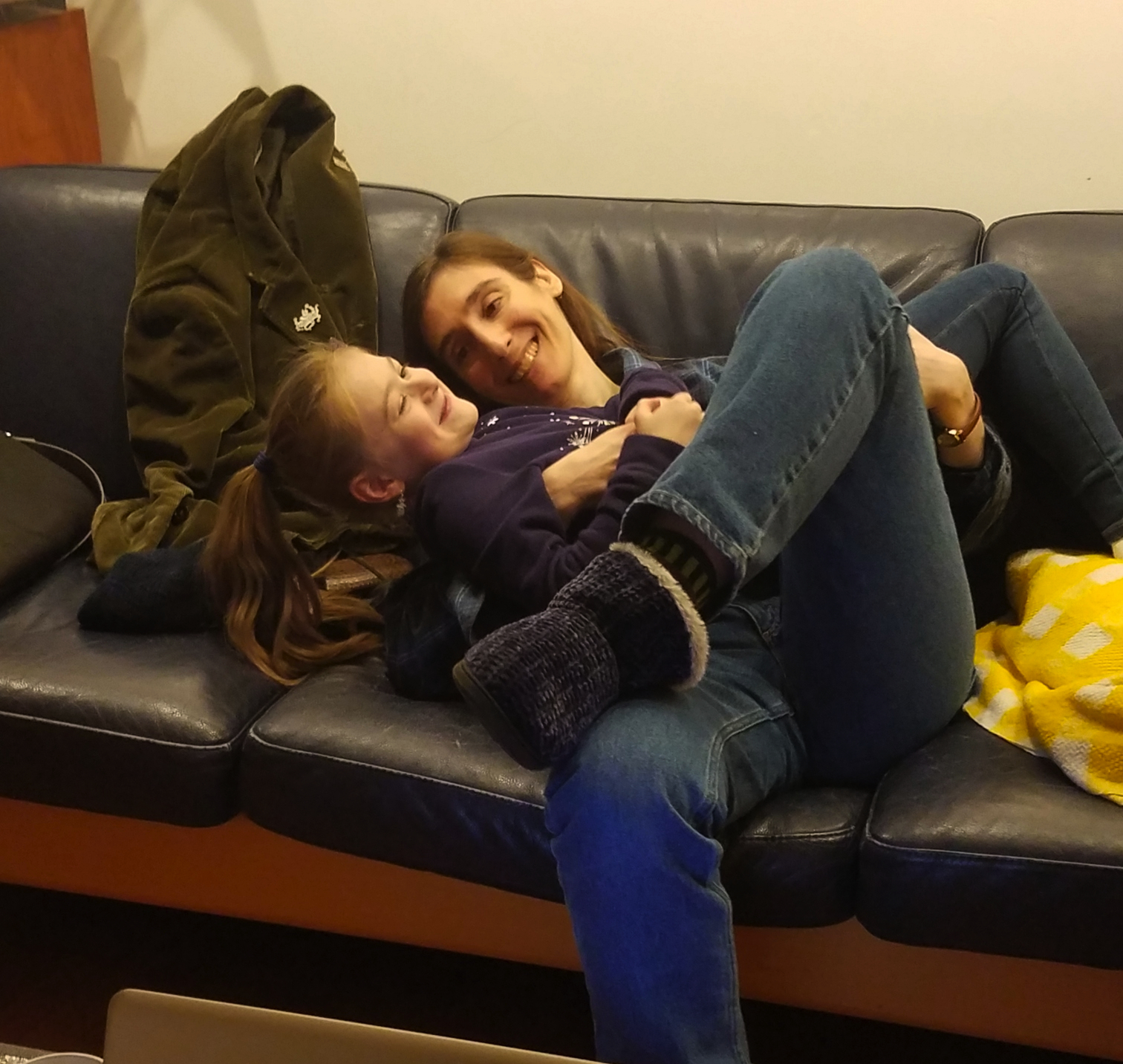 The pencil marks on the wall next to the stairwell claim that my niece has grown an inch in less than a month, which still leaves her a suitable size to pounce on me and be scooped up in turn.