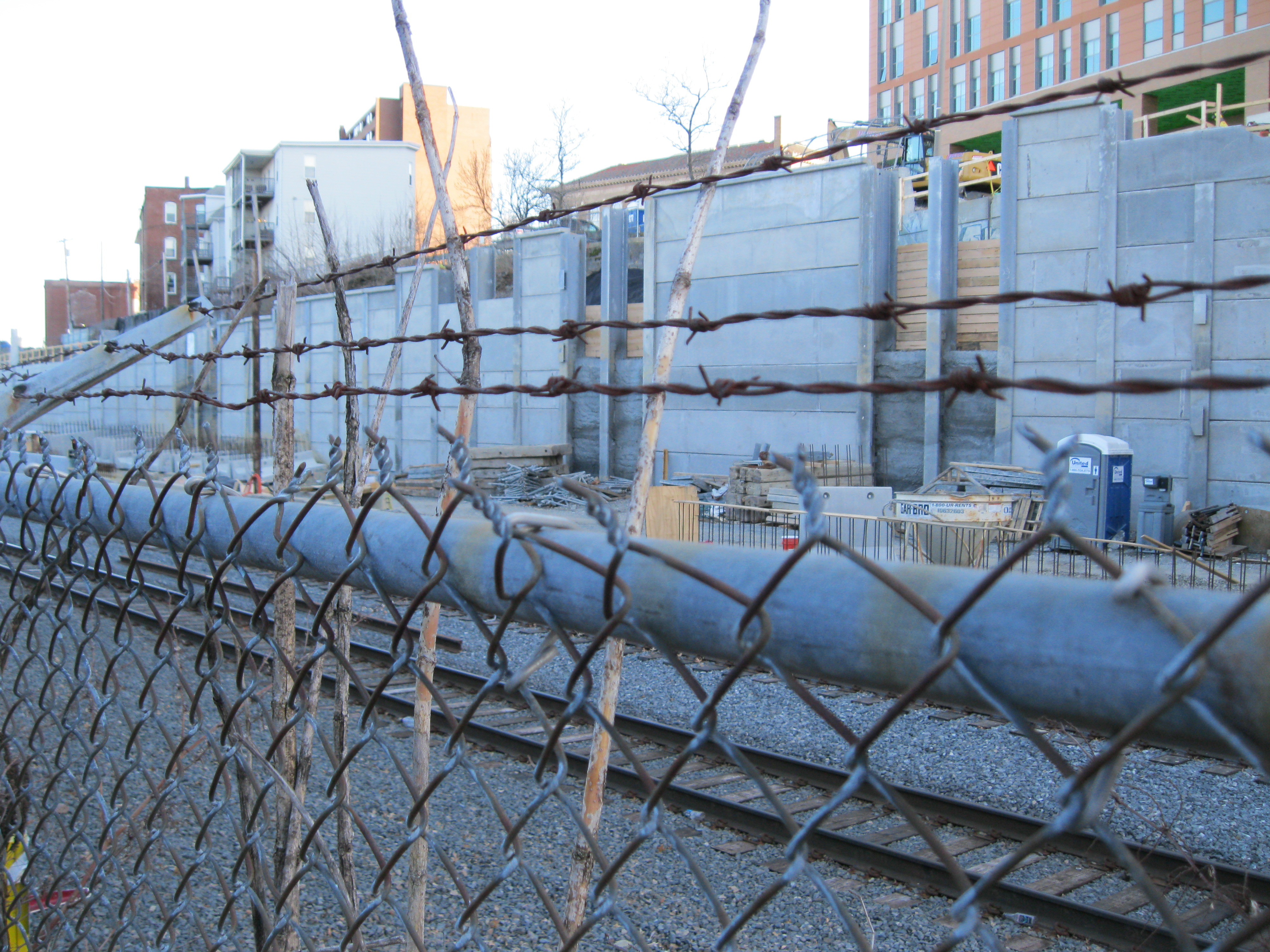I liked the look of this manhole cover, like a penny dropped onto the gravel of the right of way beside the School Street Bridge, which is now utterly impassable on foot. We detoured in a rectangle through Richdale Avenue and Sycamore and Madison Streets instead.