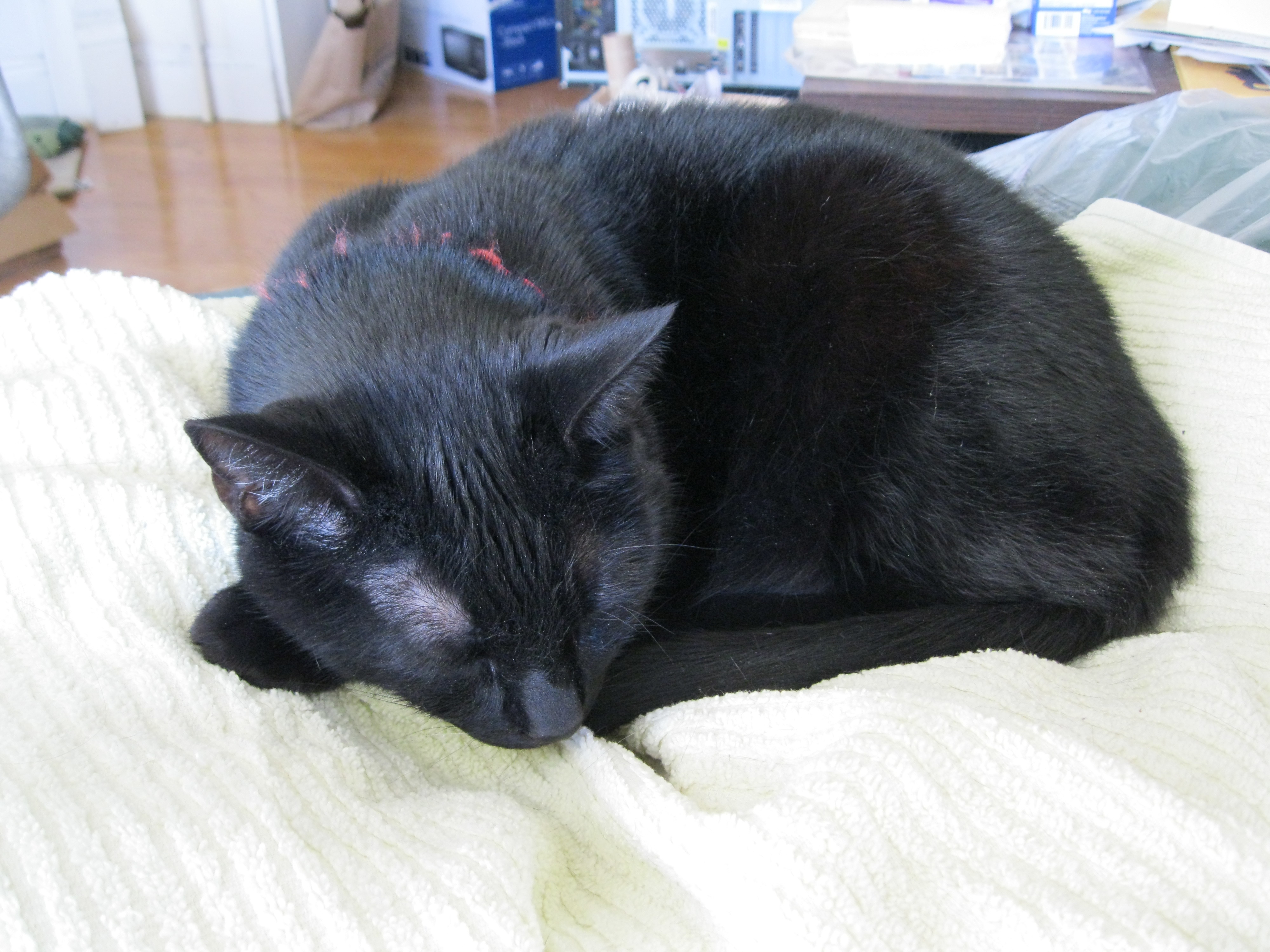 She becomes so compact when she curls up. (Autolycus curls on his side like a black wheel with his paws over his nose and his tail over his paws and we call him the challah.)