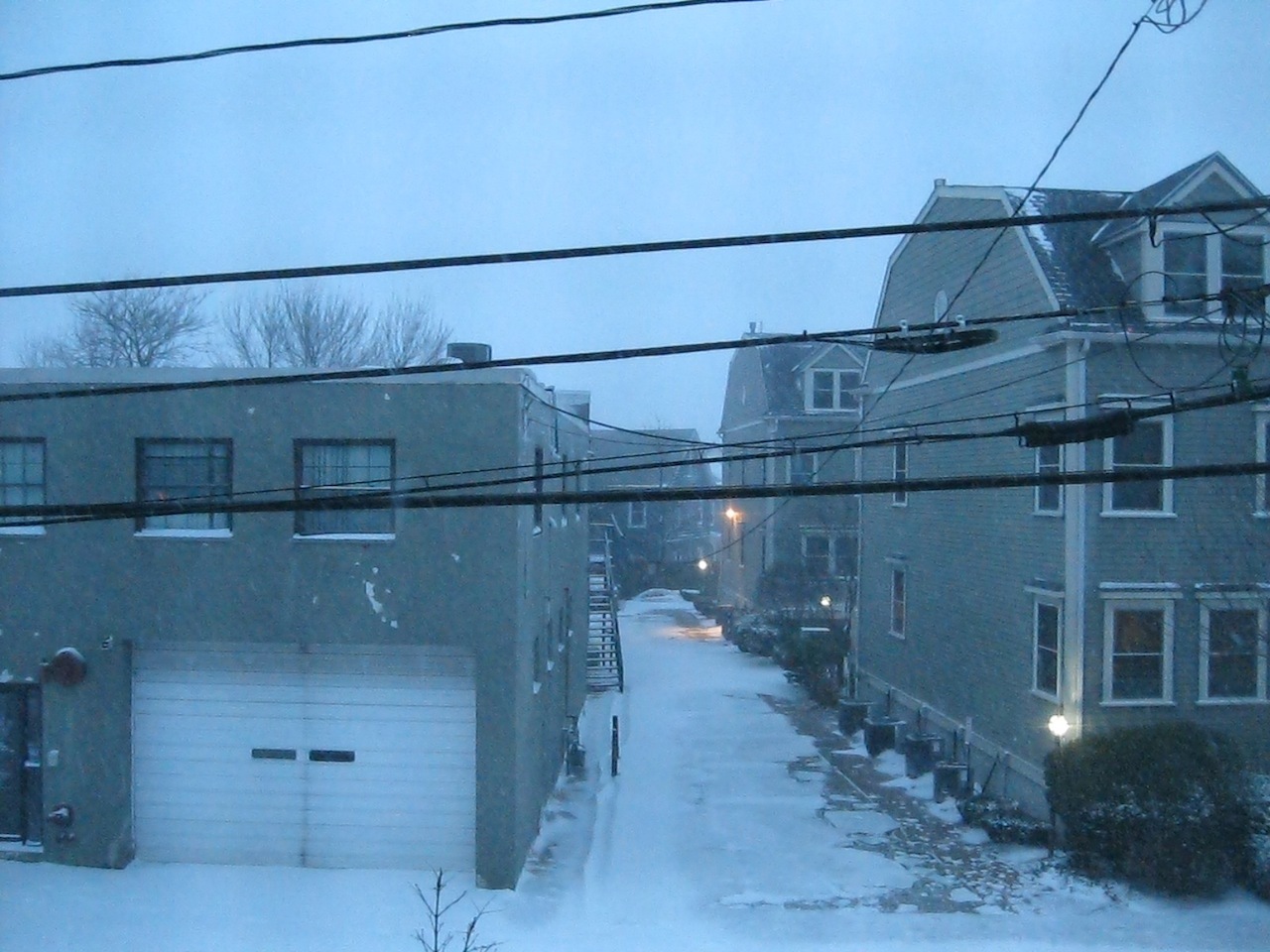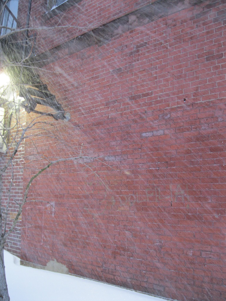 I liked the lighting of snow against the brick. Not pictured: the two people who went by the end of the street on skis.