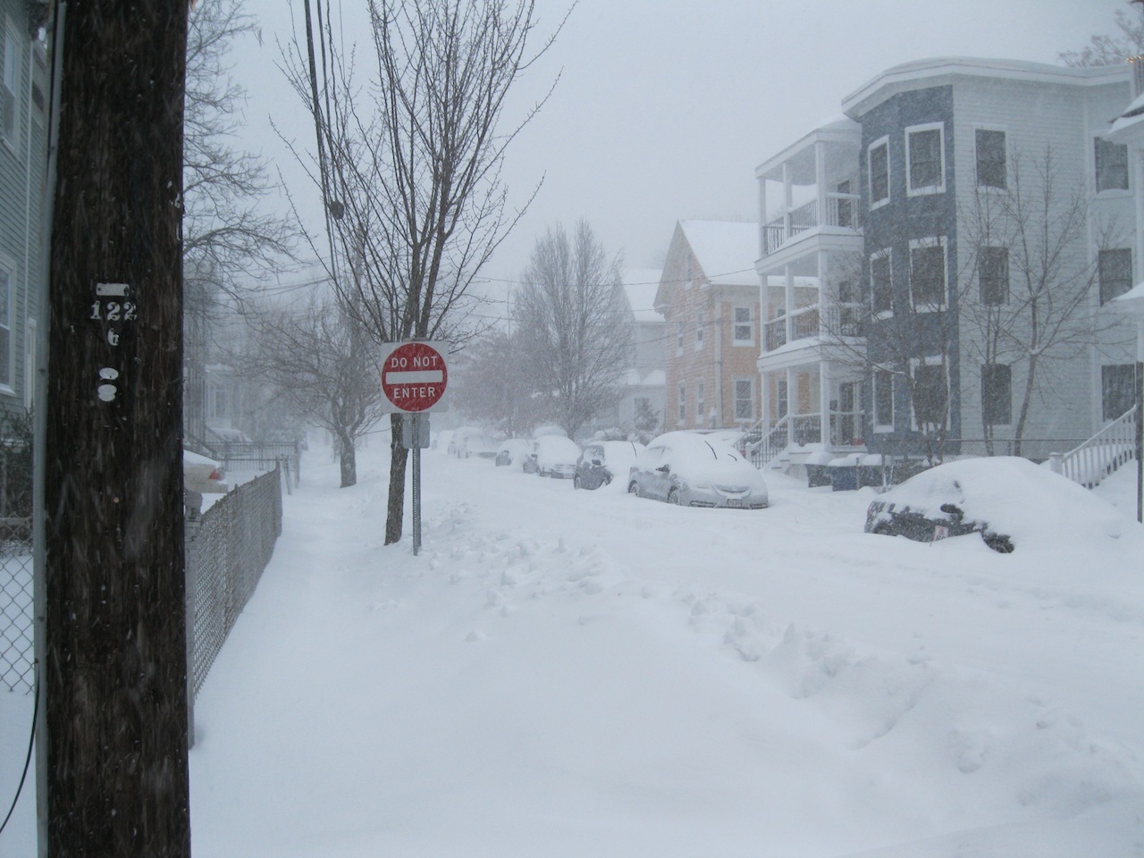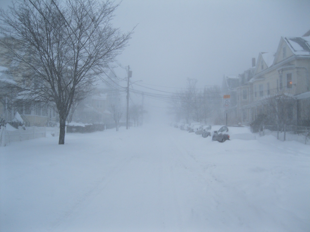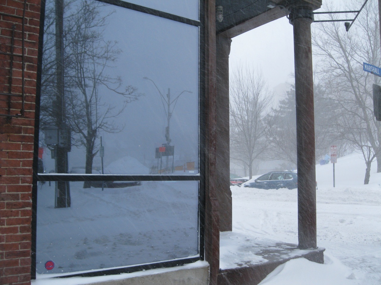It wasn't quite whiteout conditions, but the end of School Street disappeared in the snow.