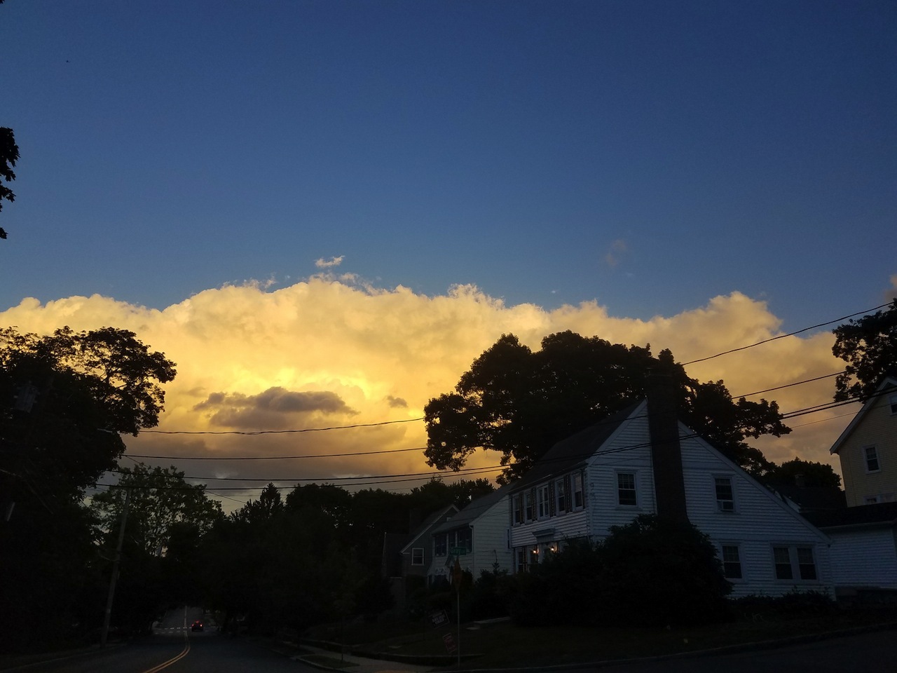 A sky-wall sighted this evening while running errands. What I could not catch in a photo was the horizon-filling scale of it, the storm-light underneath and the dragon-churn of it above. I expected thunder and it never came.