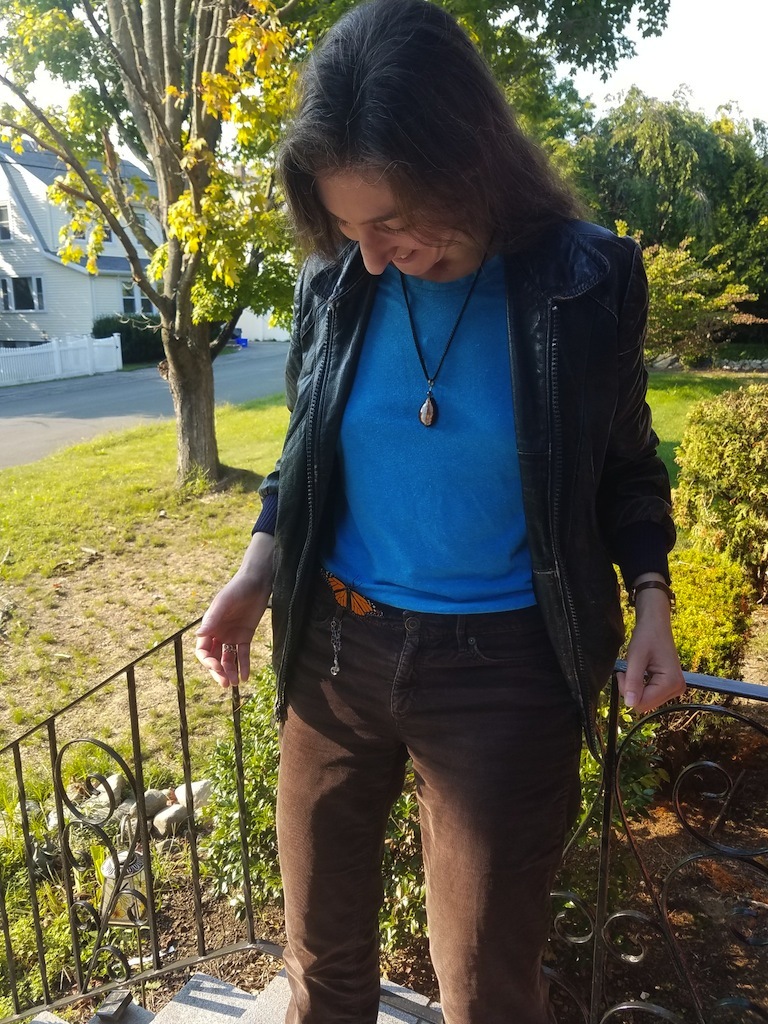 Thank you! We do not have photos of every stage, but Stripey the Tenth climbed all the way to cling like a brooch to my breast before finally taking wing.