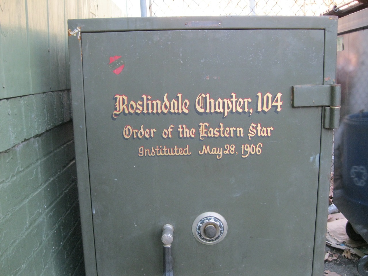 Who had at some point acquired a safe from a Masonic chapter in Roslindale, apparently. I wonder if they still exist to want it back.