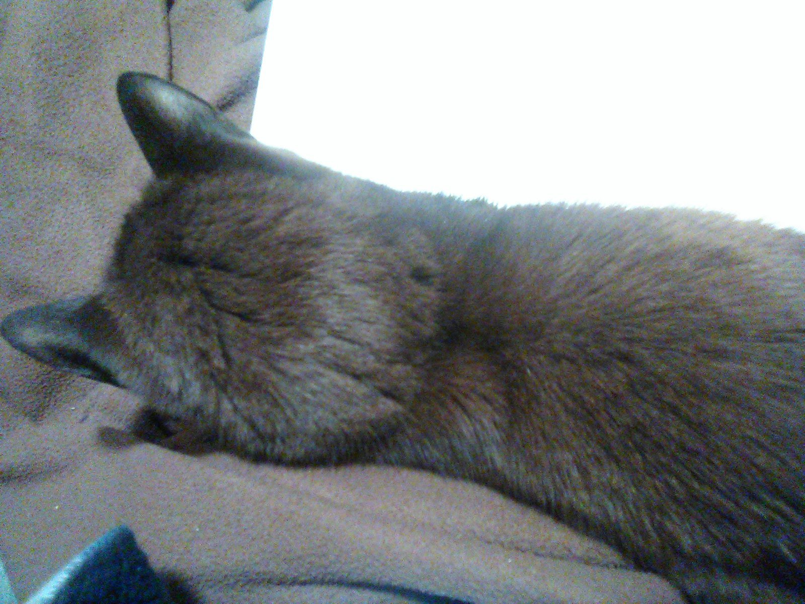 He just raised his head sleepily from my forearm, licked my wrist, and settled back down again. He is a good cat.