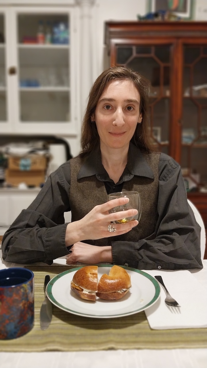 spatch's extremely dead former phone before I leave town for three nights at the end of this week. The other, however, felt like a true celebration, especially when graced by Rob joyously emerging from Berman's with their one bottle of GrandTen Distilling's Medford Rum which they had special-ordered months ago for a customer who never came to collect it. I had not been medically able to eat from restaurants since the summer. We got dinner from Mameleh's.