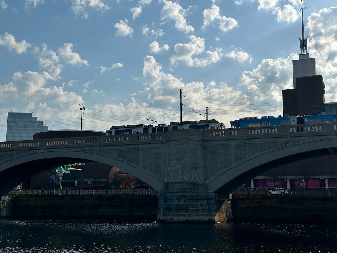 The Green Line crosses the Lechmere Viaduct, as I have loved to watch it do since my own childhood.