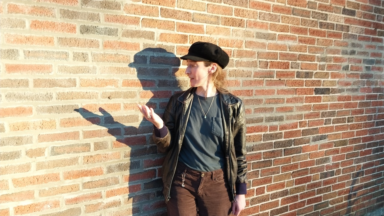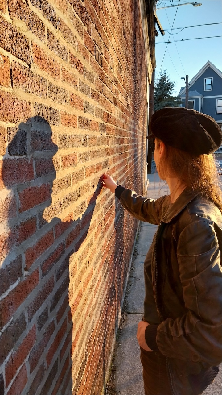spatch into Porter Square in order to look for a stuffed animal for my mother, who has a procedure tomorrow. We arrived ten minutes too late for the actual toy store whose hours the internet had misled us about, but Porter Square Books came through in the clinch with a most plush and huggable duck—קאַטשקע was her childhood nickname. Home with groceries, we made chili with ground beef and black beans and cornbread to serve it over and I am now engaged in an attempt to imitate the action of the Hestia, who is curled up tight at the other end of the couch. Earlier as we walked out, Rob made some studies of me and my shadow. I had promised photographic evidence of the mermaid lamp on my desk to