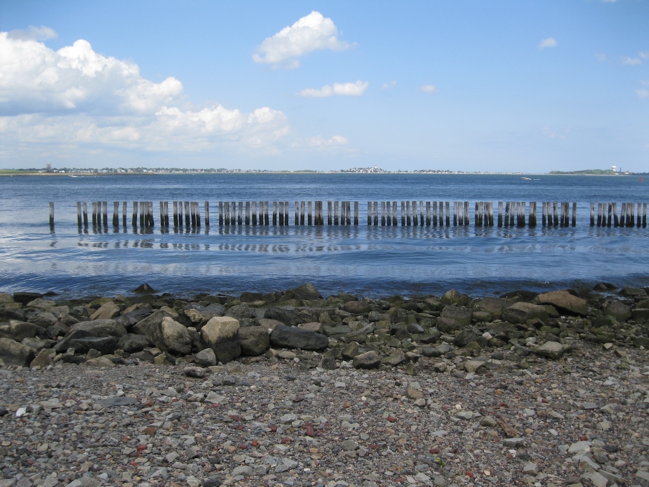 spatch came with me and afterward we went to Castle Island. We circumnavigated Fort Independence and then the artificial enclosure of Pleasure Bay, dredged and dumped a hundred years ago to support the cranes and containers of the modern Conley Terminal. The air was hot as July and billowing with sea-stacked clouds, but the shadows that kept flashing like sharks over the grass and the water belonged to low-flying planes.