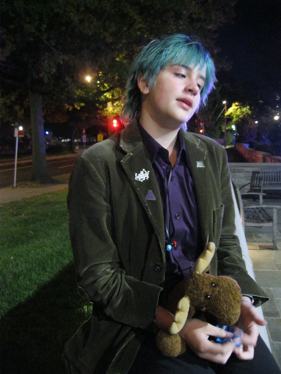 As promised, photographic evidence of the deranged monk hoodie, taken by Selkie. When I showed the object itself to Rob this evening, he couldn't decide between accompanying it with Night on Bald Mountain or the Carmina Burana.