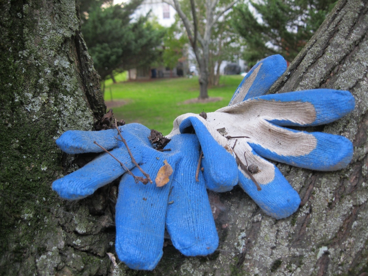 They were just up in a tree! They looked to me like gardening gloves, but there was no nearby garden.