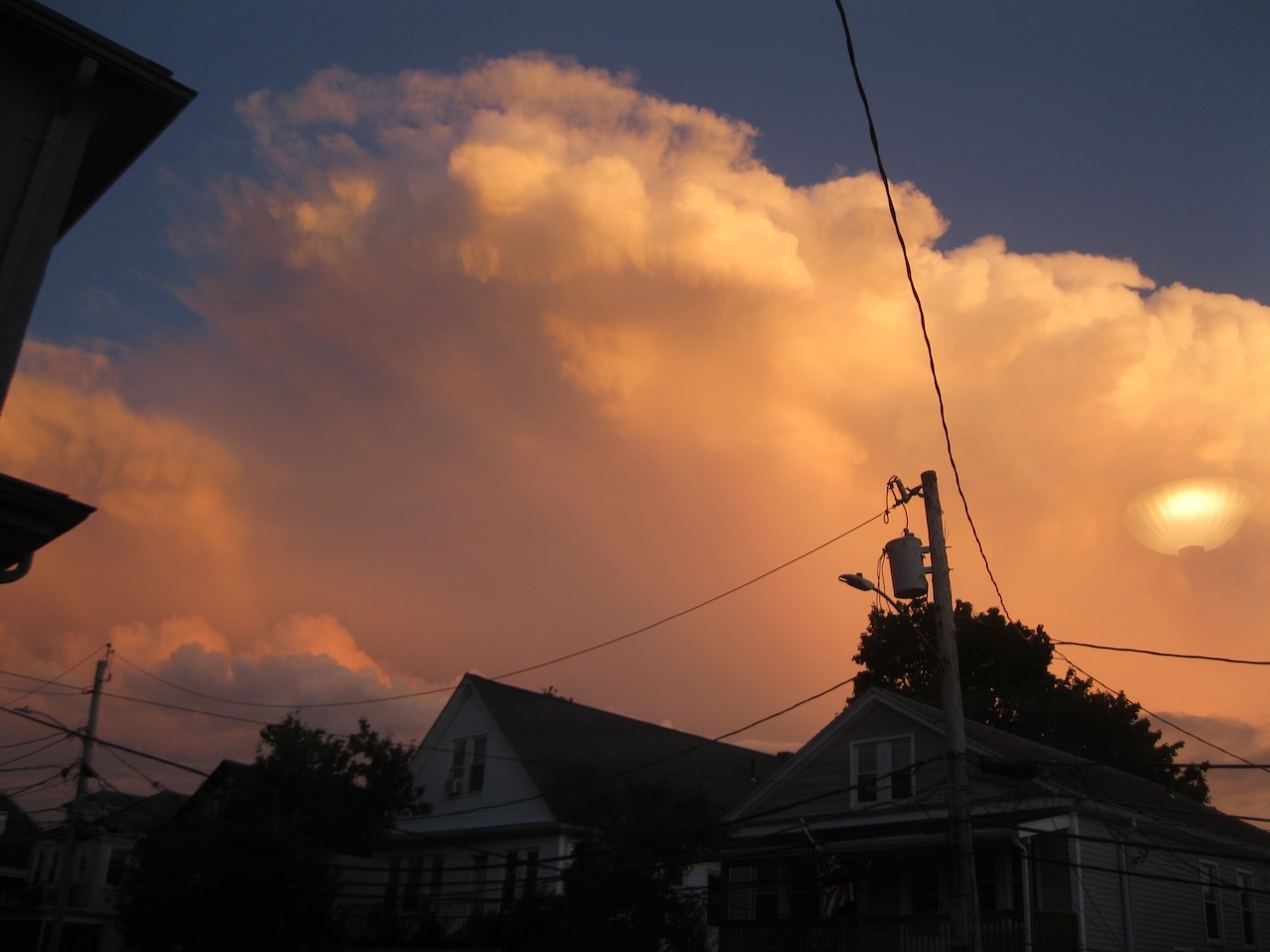 The sunset was spectacular and the ceiling lamp in my office added an in-camera flying saucer.