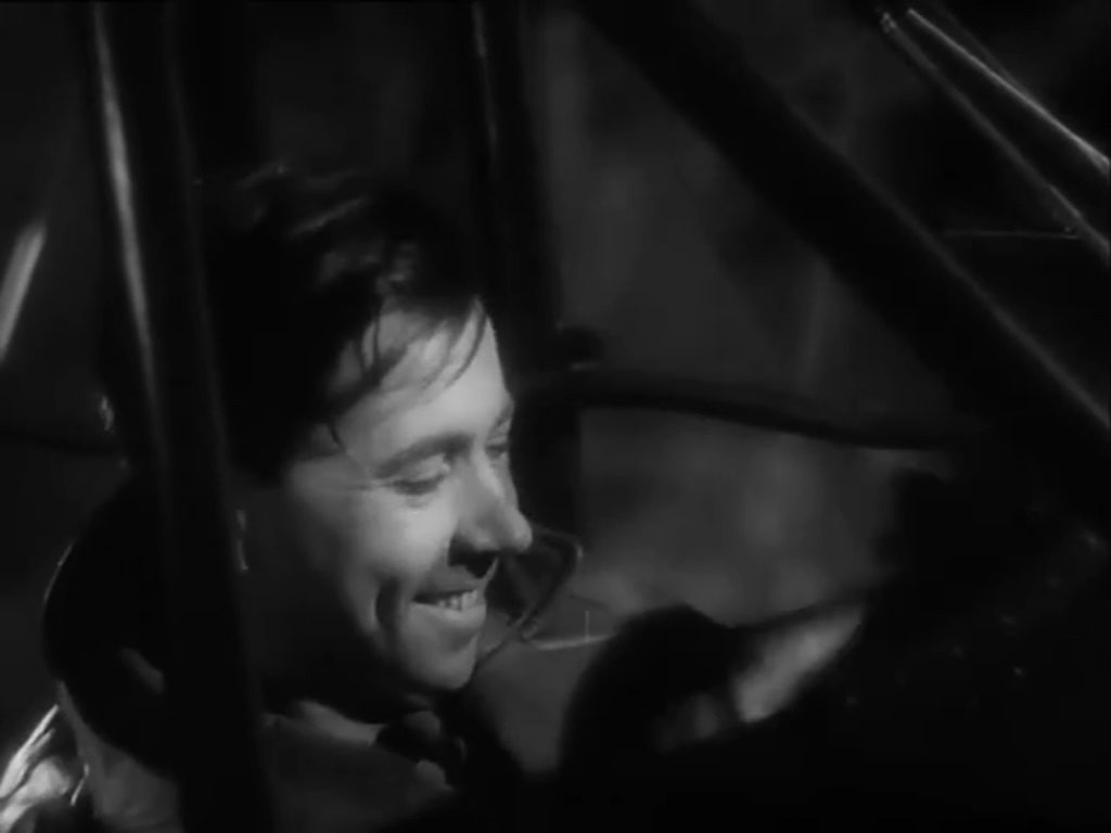 He's playing his own age in the final scene! He would have been thirty-one at the time, just off his success of a season at the Old Vic and about to head into Shaw in the West End. The brevity of the scene, the quality of the copy, and the general mise-en-scène of shadows and aeroplane struts all make it difficult to get a decent screencap, but vaguely: