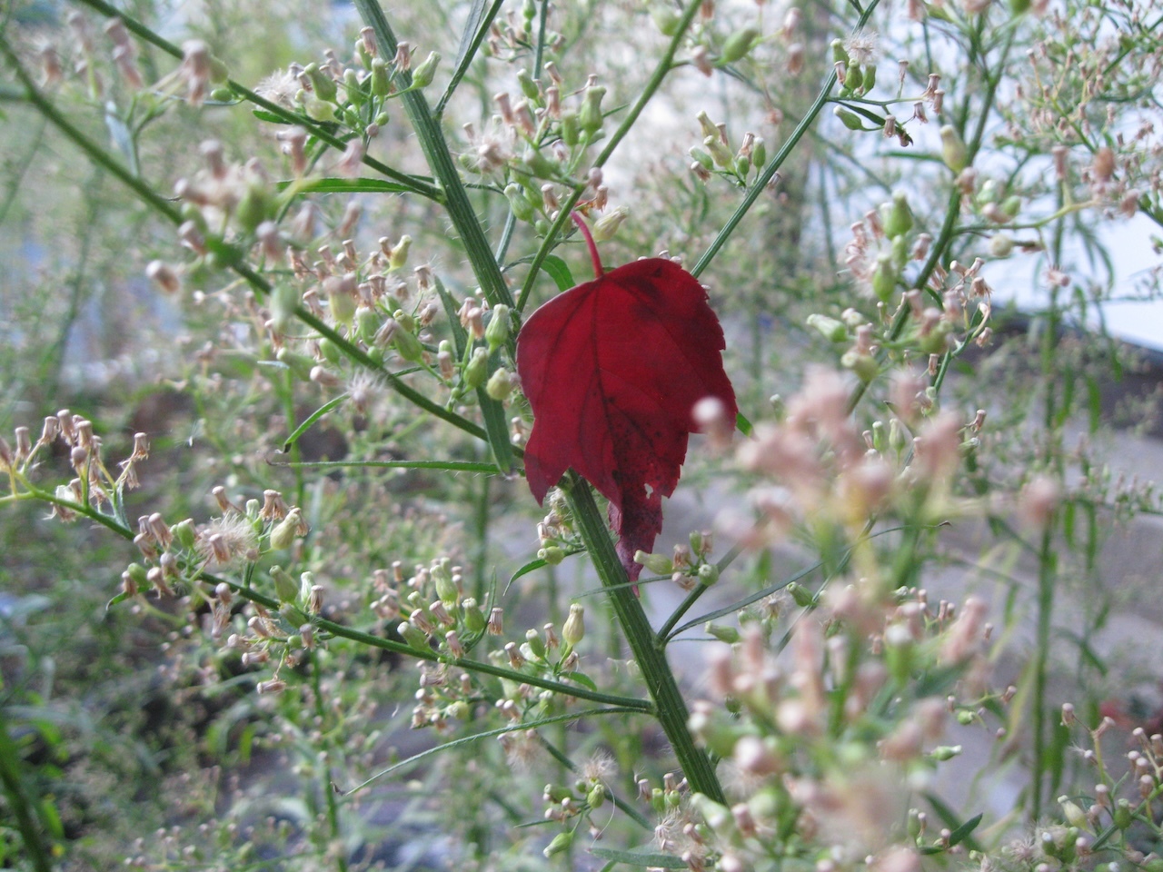 This brilliantly dead leaf in its mesh of green looked like as good a symbol of autumn as any to me.