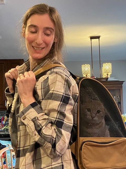 I have never known a cat who liked to be toted around in a backpack, but Jorts (Jr.) was remarkably sanguine about my giving it a try.