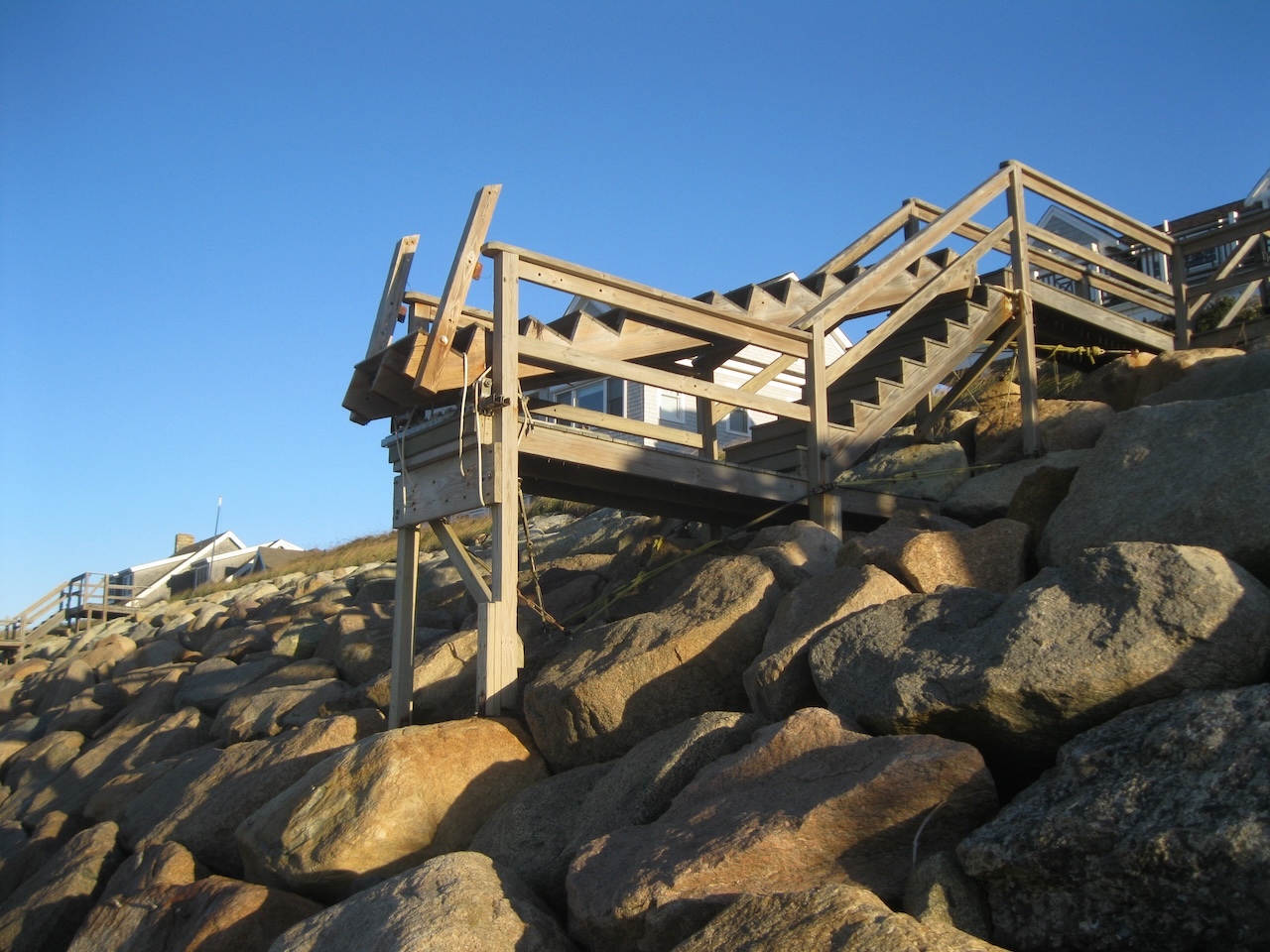 I can't remember ever before noticing the private stairs that can be pulled back above the height of a storm-surge like a drawbridge or a gangway. The most nautical one was made of metal, like a ship's catwalk.