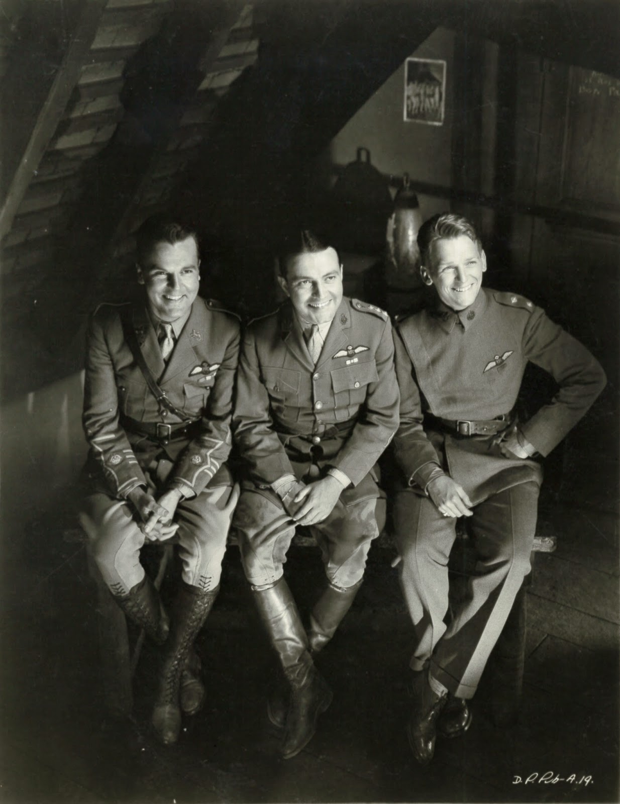 Here is a random promo shot of the 1930 leads looking delightfully out of character (i.e. relaxed and happy): https://3.bp.blogspot.com/-hrnfOypIiIA/U3X_P6zWBaI/AAAAAAAATFc/fV1OybNlJLU/s1600/aaawatch10.jpg